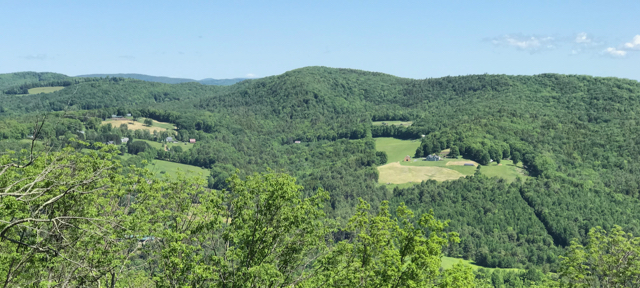 Reward: Beautiful views to the north across the hills of Brownsville, Vermont.