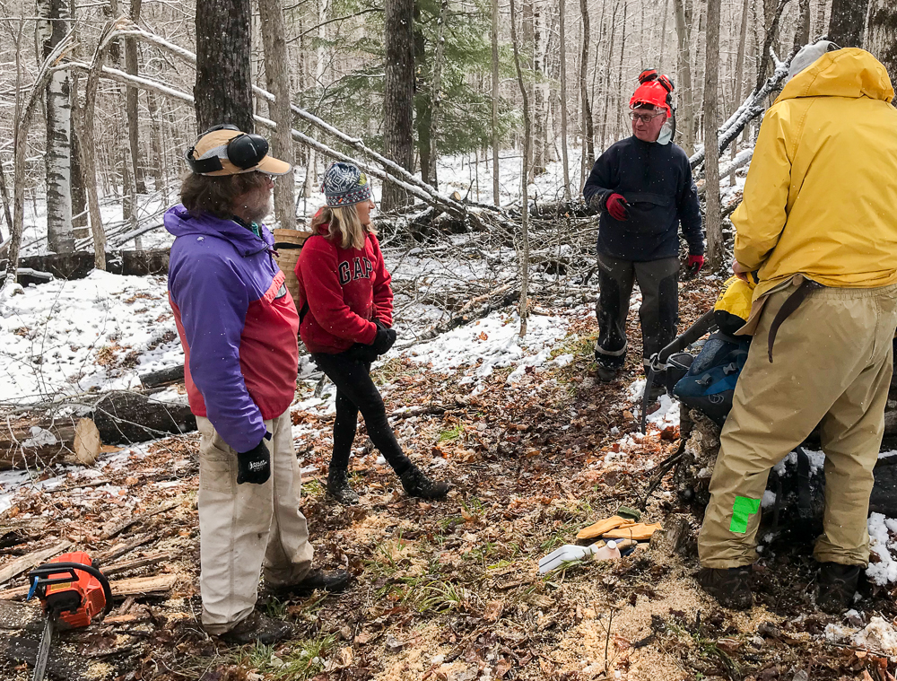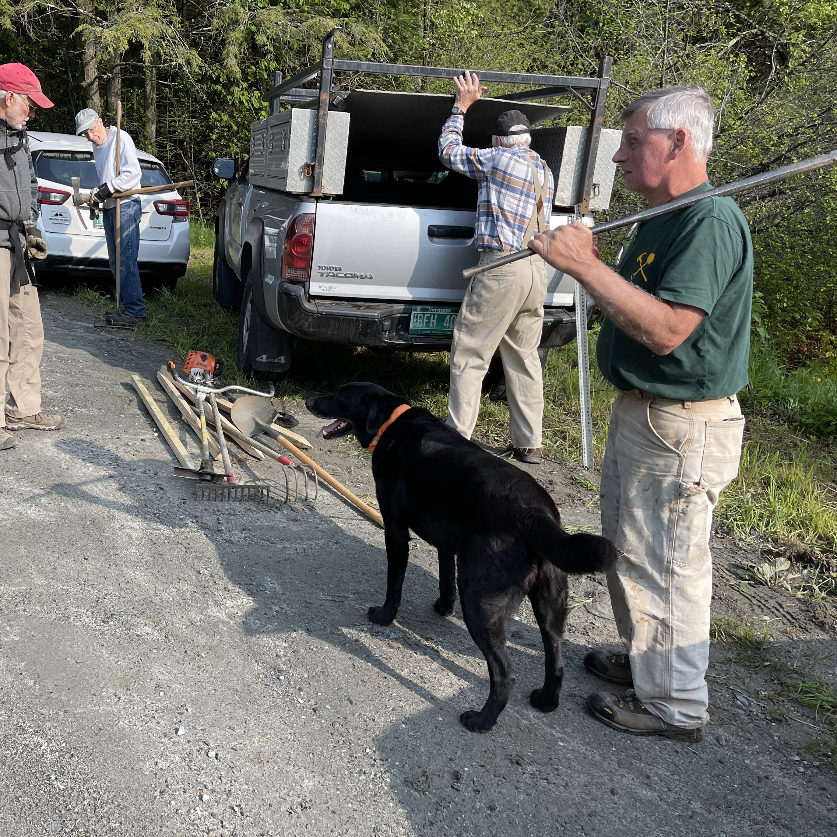Bob has an extensive array of tools and skills to go with them that he applies to keeping Norwich’s trails in good shape, in all seasons. His chainsaw cuts through windfalls, his brush cutter keeps the weeds at bay, he may be found digging a drainage ditch, or at times, on a snow machine, grooming a trail. He and his dog, Bela, are regular participants in Norwich Trails volunteer work days.