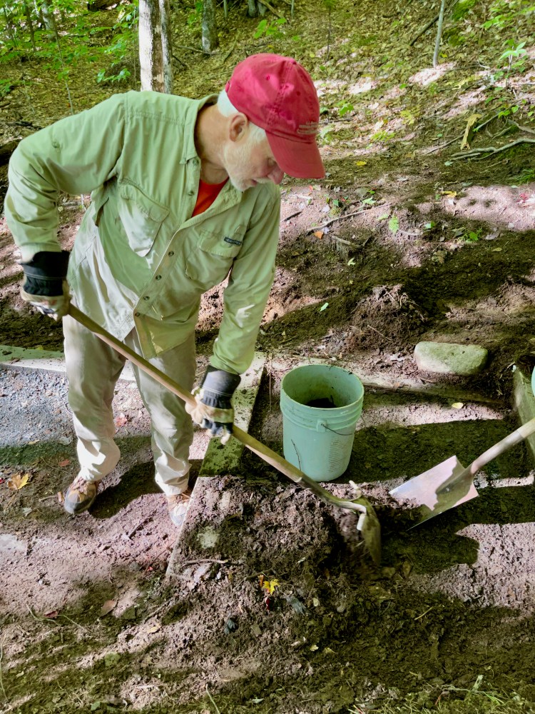 Peter enjoys a good challenge in trail building. Norwich’s landscape has yet to put a rock in his path that he couldn’t lever into place for good effect, whether it be installing steps on a steep hillside or creating stepping stones over a stream crossing.