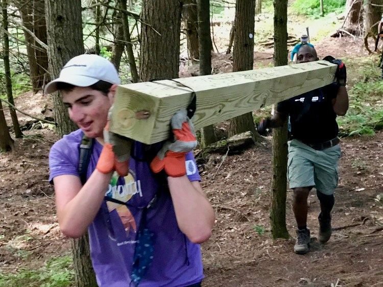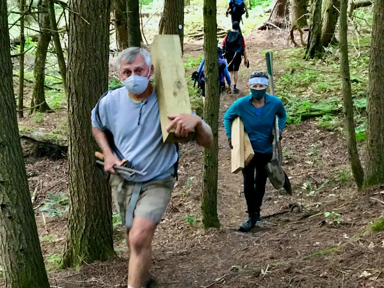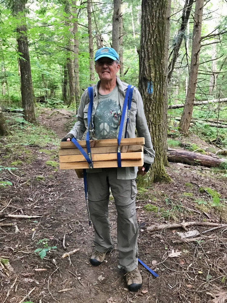 On this day, 14 volunteers carried materials and tools about ¾ of a mile to the site, using a variety of methods.